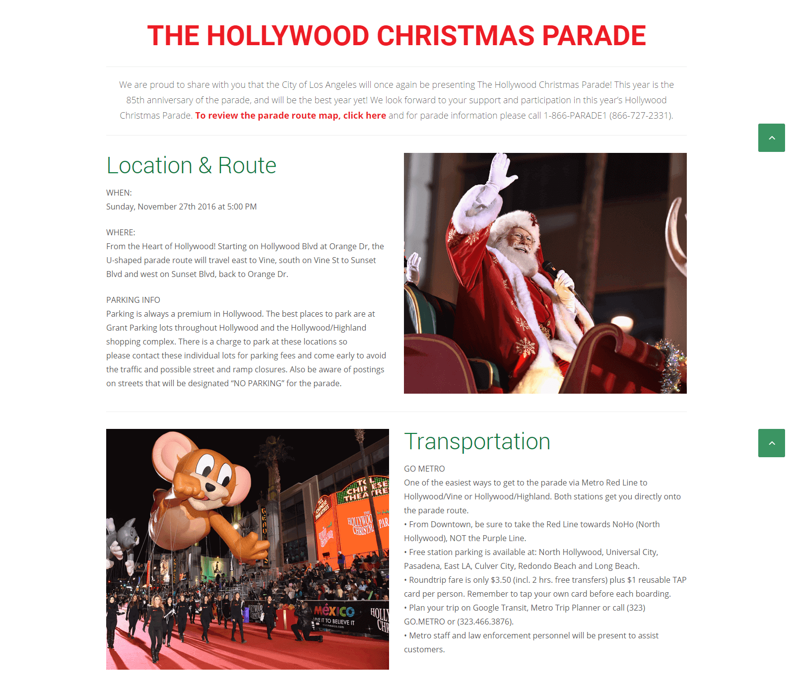 Updated the look by being charged with choosing the style of the layout and also editing and modifying the layout's php and css heavily to work within the parameters of Hollywood Christmas Parade's requests.