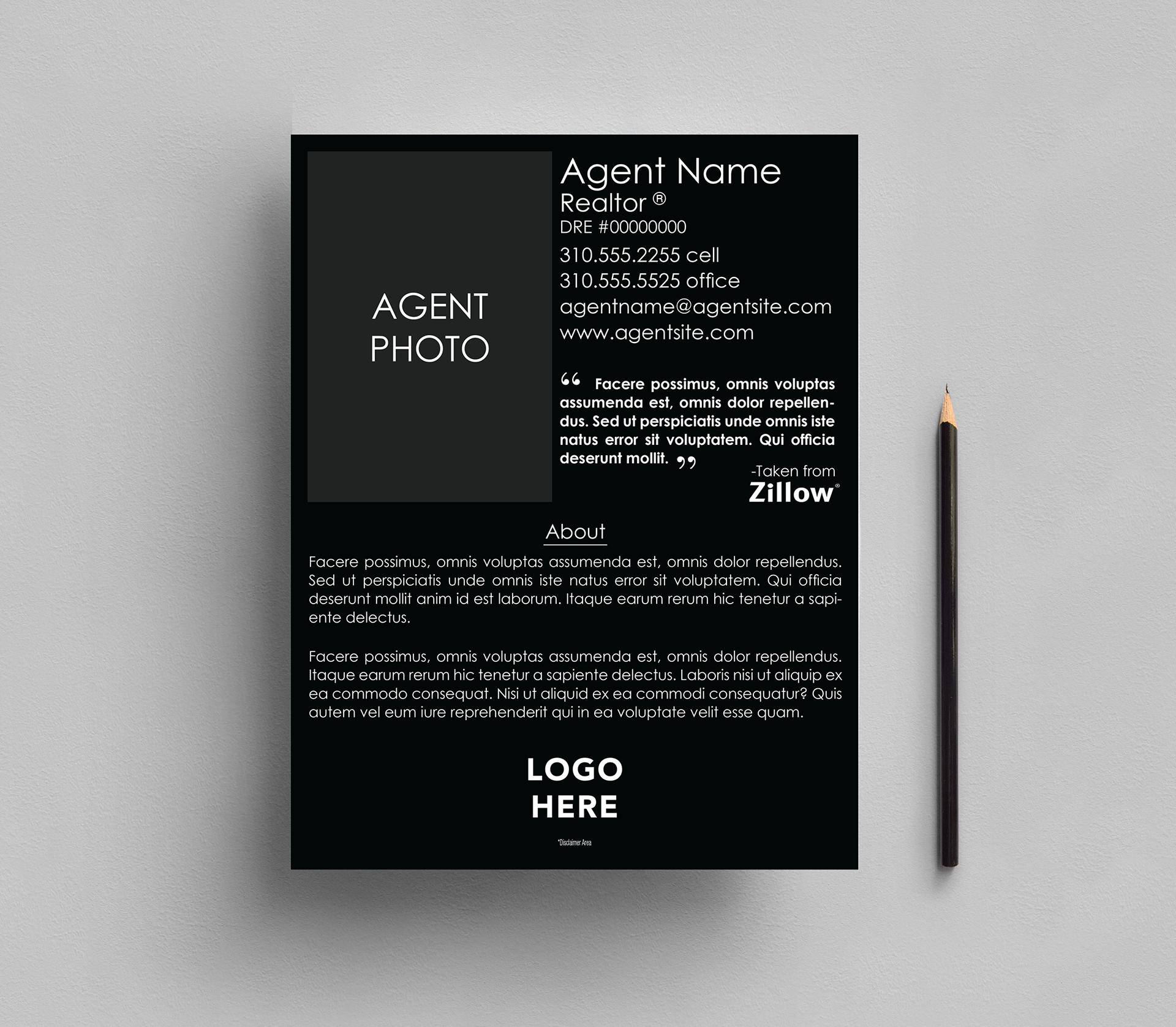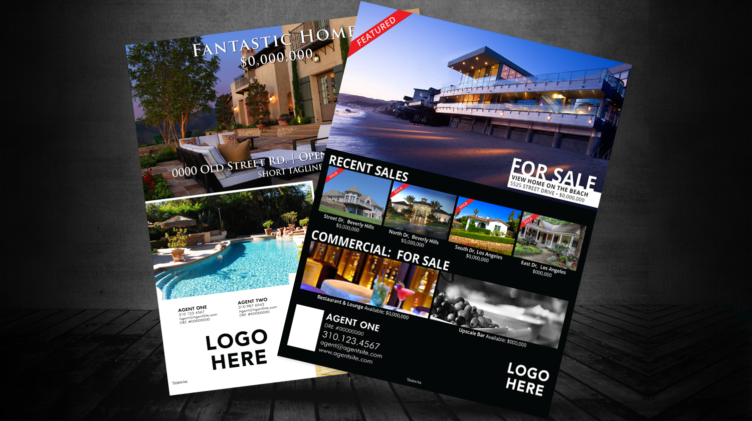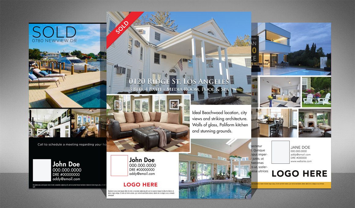 Shown are examples of my Real Estate Marketing Design Starter Kit (for sale) which is the most comprehensive collection of templates (InDesign .indd) covering everything from flyers to postcards to MLS ADs and more. To purchase any separate packages or the full collection, please feel free to contact me (below) and enjoy.